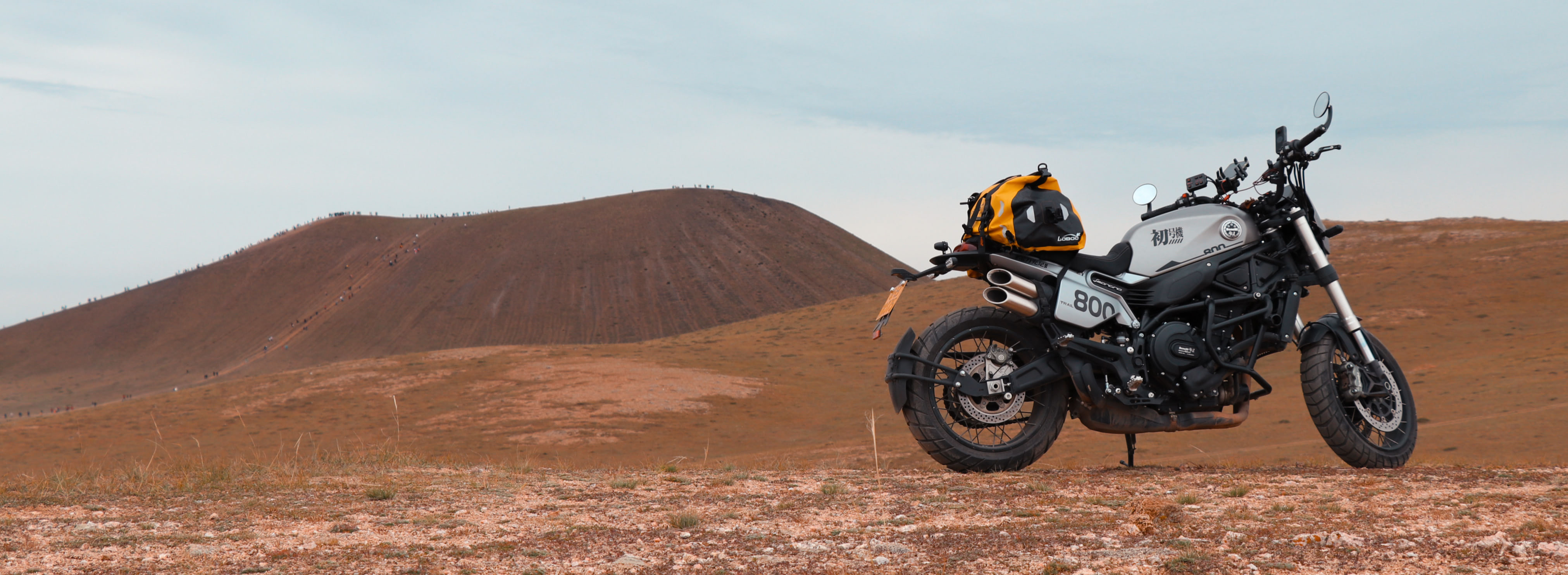 快到火山了发现一条岔路,还有警察叔叔在摆一个大牌子,「火山旅游路线」,问了后果断选择了指向的新路,新路好走的不要不要的。来到六号火山,人还不少,阴天更是给这里增添了一份外星感。摩托的好处是能骑上平台,转到北面发现人比较少,借来的大疆终于能派上用场了,虽然最后感觉拍的并不好。