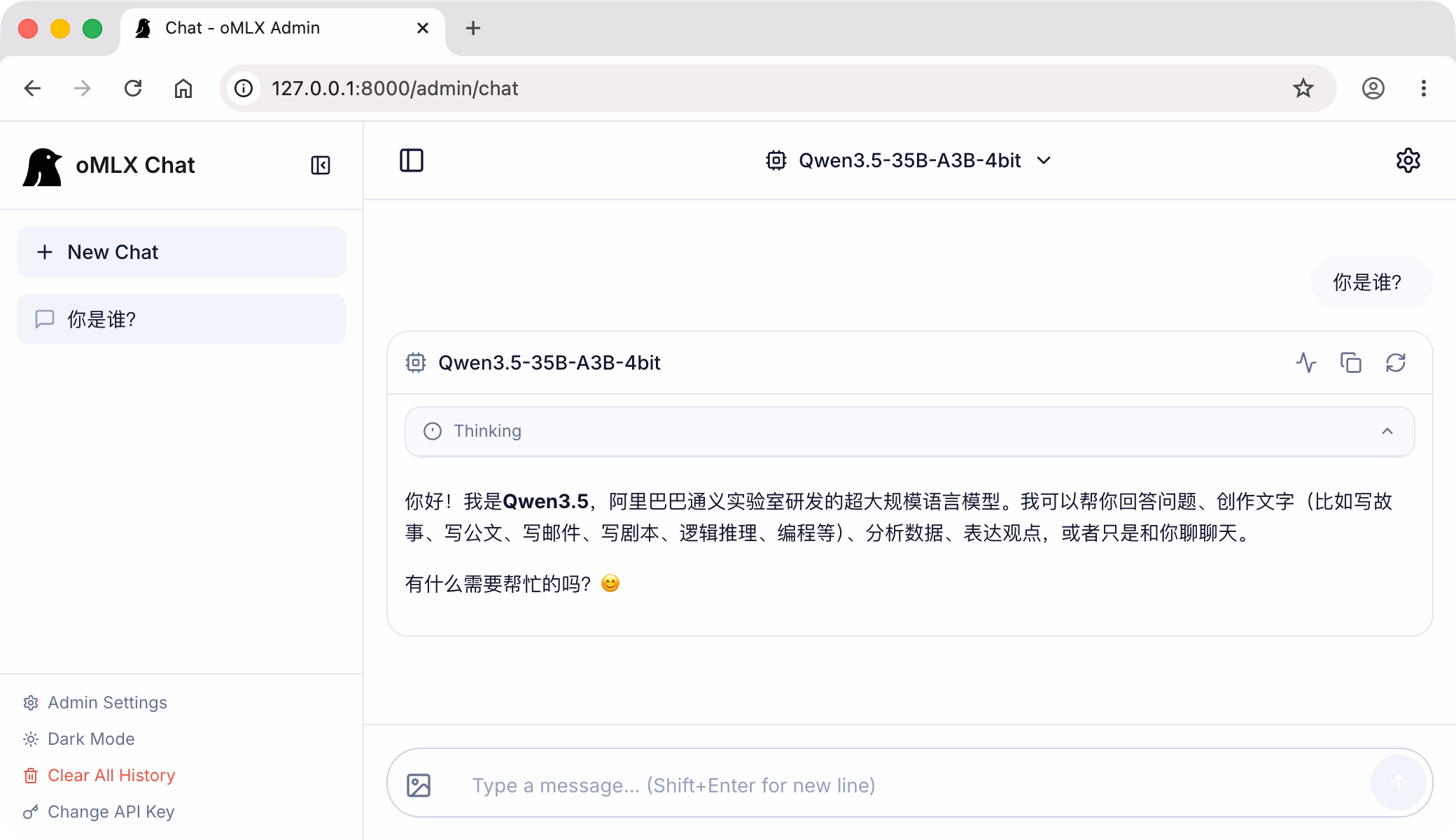 单击 Chat 进入对话页面,选择对应的模型,即可开始对话: